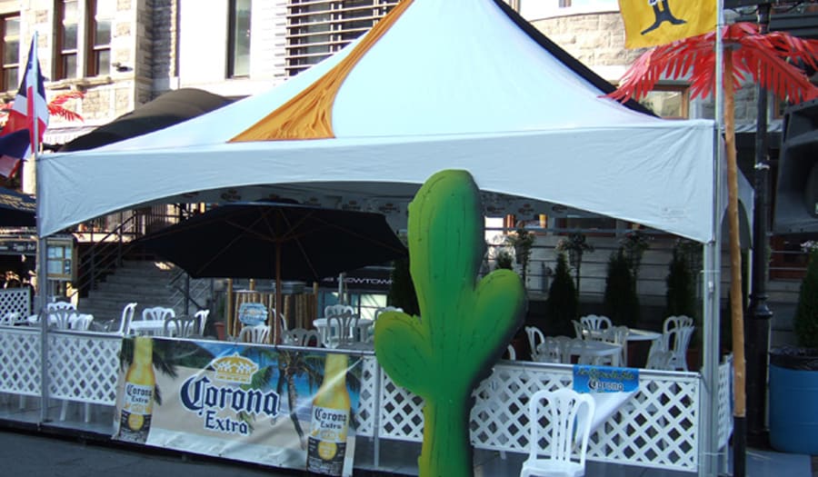As part of the event on Crescent Street, we installed several 20 x 20 free-standing tents. We also added a level floor so that the installation is straight.